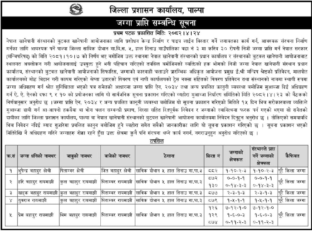 जग्गा प्राप्ति सम्बन्धि सूचना